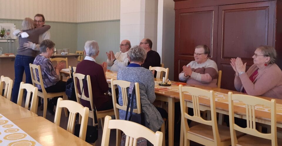 Kevättä ilmassa huhtikuun seniorikaffeilla. Iloinen puheensorina täytti jälleen tilan kunnes hiljennyttiin kuuntelemaan eskarilaisten ihania lauluesityksiä. Kyllä oli hieno esitys ja mahtavia laulajia, kiitos heille. Saimme kuulla myös onnittelulaulun senioreilta puheenjohtajalle, myös hallitus muisti ennen kokouksen alkua onnitteluin, Heikki kiittää! Monenlaista juttua käytiin kaffien lomassa mukavassa seurassa ja Orvokki esitti hienoa runonlausuntaa. Kyllä näillä taas jaksaa seuraavaan tapaamiseen.